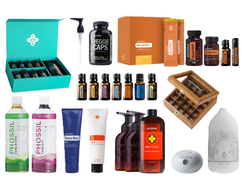 ・ブレンドオイル5種類:森の音、アダプティブ、ドテラセレニティー、イージーエア、メタPWR(各15mL)・PHOSSIL ミネラル2種類:オリジナル、カシス(各550mL)・メタPWRソフトジェル・メタPWRビーズ・メタPWRアシスト・メタPWRアドバンテージ・ベジタブルカプセル