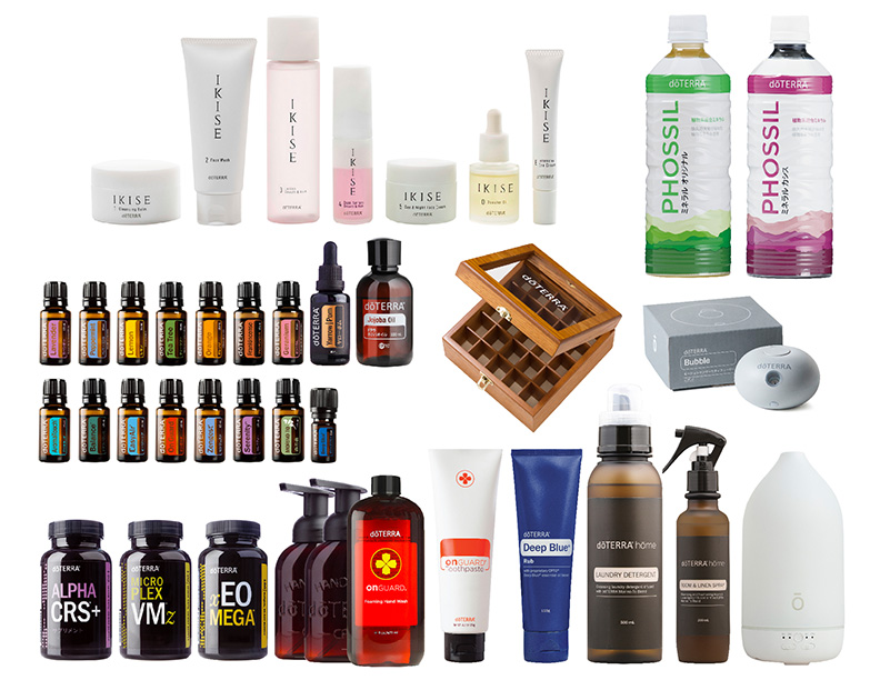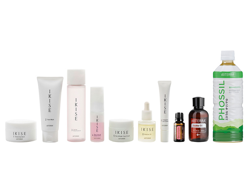 ・ドテラ ホホバオイル(100mL)・IKISE クレンジング バーム・IKISE フェイス ウォッシュ・IKISE ブースター オイル・IKISE ローション <クリア & ライト>・IKISE デュアル セラム <クリア & ライト>・IKISE デイ & ナイト フェイス クリーム・IKISE インテンシブ アイ クリーム・PHOSSIL ミネラル オリジナル(550ml)・キャップステッカー・WAサインアップキット(3部)