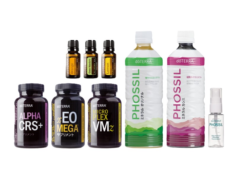 健康に欠かせないベースサプリメントと手軽に摂取できるミネラルをプラスするドリンクタイプのPHOSSILを組み合わせたキットです。健康サポートのためにドテラを始める方におすすめ。