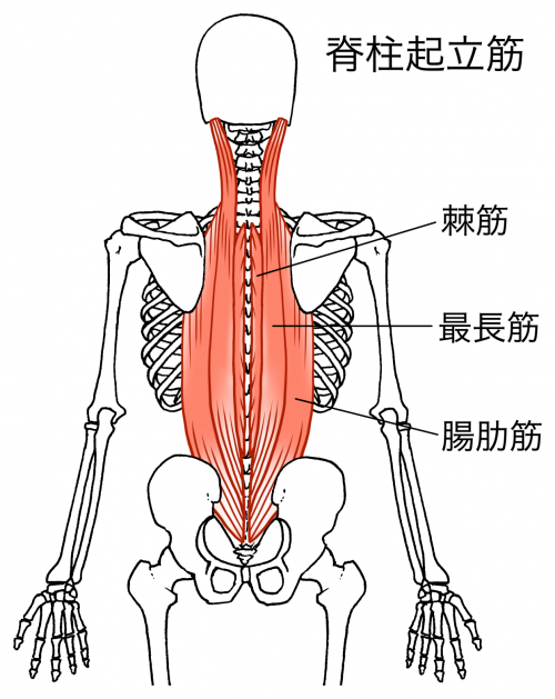 「脊柱起立筋(せきちゅうきりつきん)」。